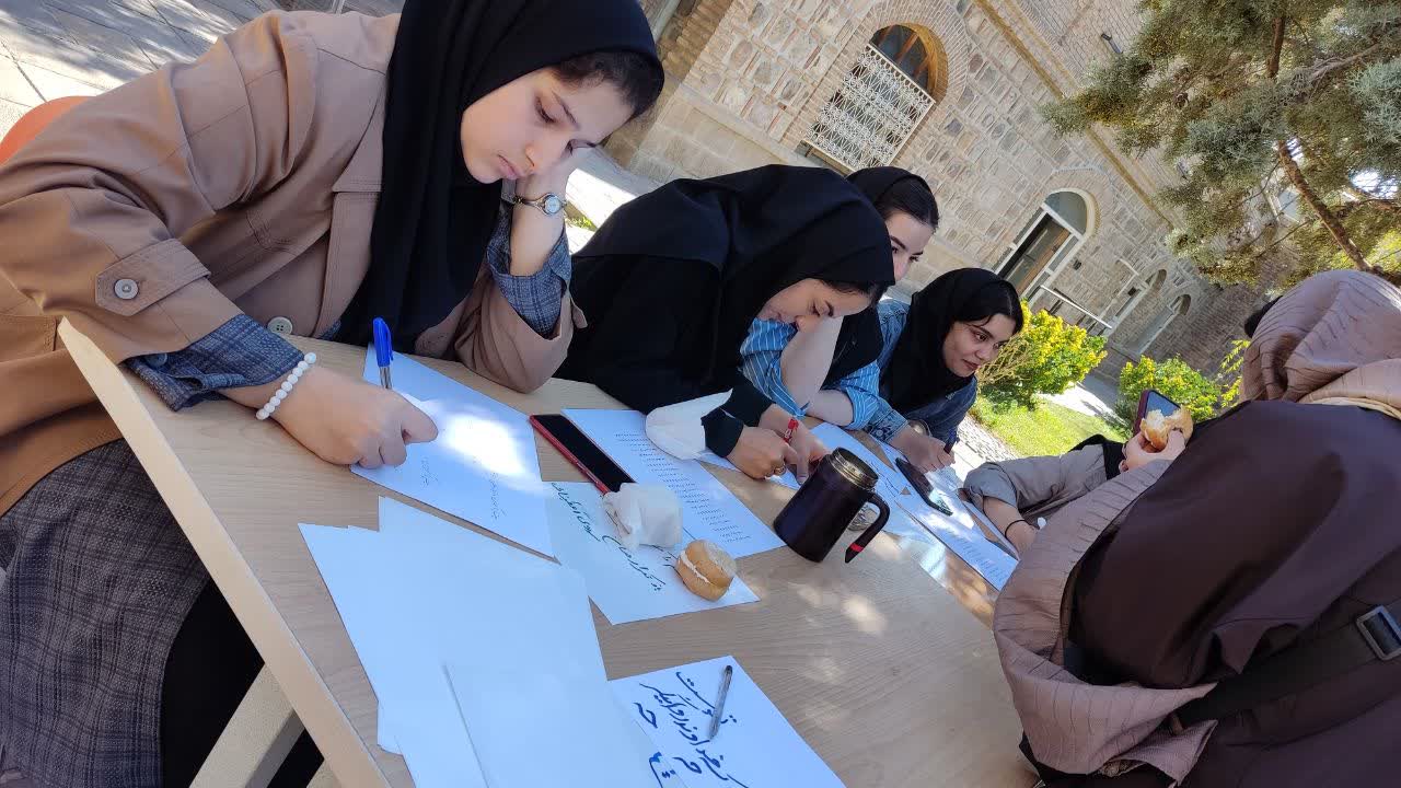 فضای صمیمی و علمی این دورهمی فرصتی فراهم آورد تا دانشجویان با تبادل تجربیات و دریافت بازخورد از اساتید، مهارت‌های خود را در زمینه خوشنویسی و طراحی ارائه بدهند.