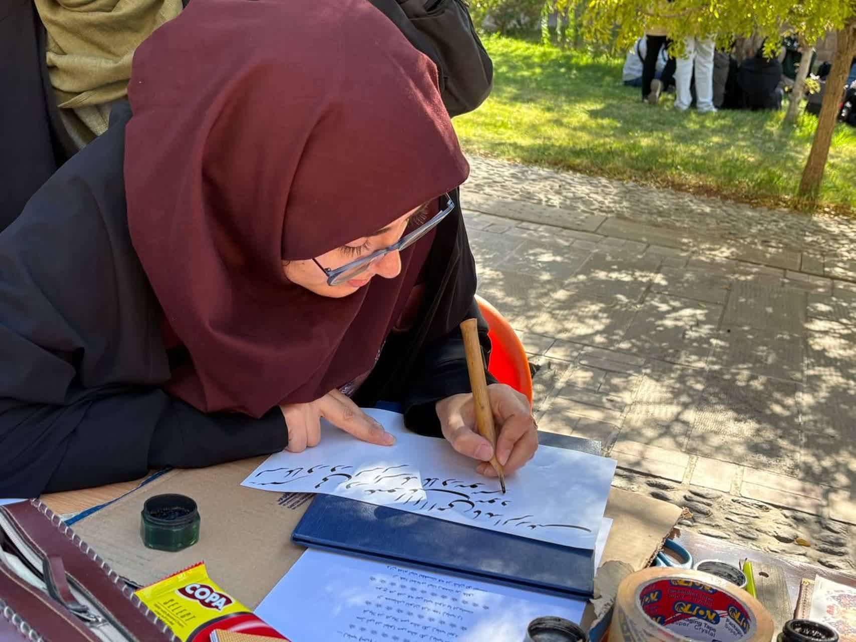 در این برنامه، شرکت‌کنندگان به اجرای زنده آثار خوشنویسی با محوریت نام حضرت زینب (س) پرداختند.